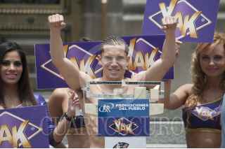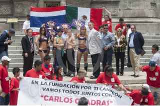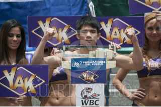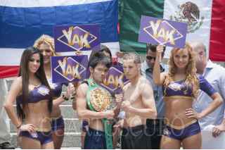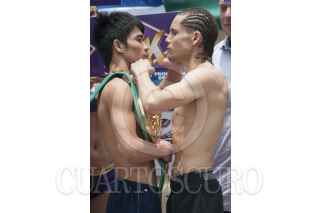 MÉXICO, D.F., 30MAYO2014.- Ceremonia de pesaje rumbo a la función denominada "Por mi Tierra, en la que el mexicano Carlos Cuadras buscará quedarse con el campeonato Supermosca del Consejo Mundial de Boxeo que ostenta el tailandés Srisaket Sor Rungvisai. El evento tuvo acto en la glorieta del Ángel de la Independencia y la pelea se llevará a cabo el día de mañana en la Sala de Armas de Ciudad Deportiva. FOTO: DIEGO SIMÓN SÁNCHEZ /CUARTOSCURO.COM