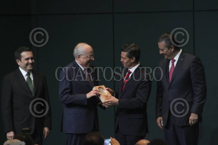 MÉXICO, D.F., 30MAYO2014.- El gobernador de Michoacán Fausto Vallejo, el secretario de Energía Pedro Joaquín Coldwell y ministro Alfredo Gutiérrez Ortiz Mena, durante la 32 Asamblea Ordinaria del Consejo Coordinador Empresarial. FOTO: MOISÉS PABLO /CUARTOSCURO.COM