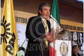 MÉXICO,D.F., 30MAYO2014.- Raúl Flores, presidente PRD DF. En el marco de su 25 aniversario, el PRD dio por inaugurada esta noche su sesión solemne, a la cual asistieron algunos de sus representantes más significativos. Raúl Flores, presidente del PRD a nivel distrito, recordó la hazaña de Heberto Castillo y recordó a los presentes de los principios básicos de la izquierda. FOTO: MARÍA JOSÉ MARTÍNEZ /CUARTOSCURO.COM
