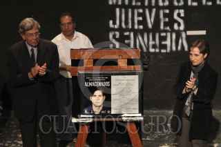 MÉXICO, D.F., 30MAYO2014.- Cuahutemoc Cárdenas Coordinador de Asuntos Internacionales del DF y la periodista Carmen Aristegui, develaron la placa de la representación de la obra teatral Almacenados. FOTO: SAÚL LÓPEZ /CUARTOSCURO.COM
