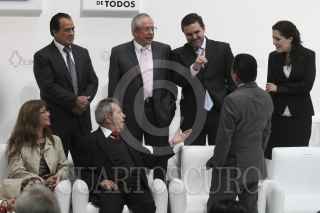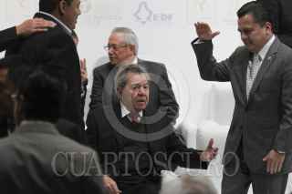 MÉXICO, D.F., 04JUNIO2014.- Porfirio Muñoz Ledo, Comisionado para la Reforma Política del Distrito Federal, Federico Doring, coordinador de la bancada del PAN en la ALDF y Manuel Granados Covarrubias, presidente de la Comisión de Gobierno de la ALDF, durante entrega de la "Iniciativa con proyecto de decreto por el que se adiciona y derogan diversas disposiciones del estatuto de gobierno del Distrito Federal." FOTO: ADOLFO VLADIMIR /CUARTOSCURO.COM