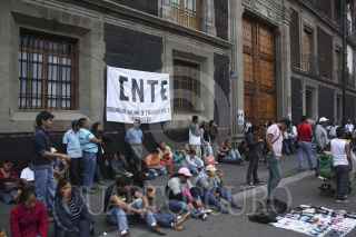 MÉXICO, D.F., 04JUNIO2014.- Maestros de la Coordinadora Nacional de Trabajadores de la EducacIón se manifiestan a las afueras de las oficinas de la Secretaria de Educación Pública, en protesta contra la reforma educativa y exigen que el titular de la SEP, Emilio Chuayffet, se sume a las mesas de diálogo. FOTO: ADRIANA ÁLVAREZ /CUARTOSCURO.COM