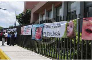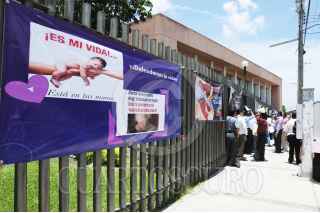 CHILPANCINGO, GUERRERO, 04JUNIO2014.- Un grupo de personas se congregaron en la entrada del Congreso del estado para protestar y exigir a los diputados que no aprueben la iniciativa de ley que envió el gobernador de Guerrero al congreso para la despenalización del aborto. Los legisladores emitirán su dictamen esta tarde. Un grupo de ciudadanos en contra de la despenalización del aborto colocaron mantas y pancartas en el perímetro del recinto legislativo. FOTO: JOSÉ I. HERNÁNDEZ /CUARTOSCURO.COM