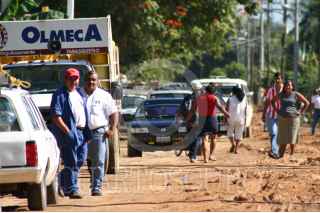 VILLAHERMOSA, TABASCO, 12ENERO2006.- Aproximadamente 25 personas que forman la familia Esquivel Pérez bloquearon la carretera interestatal que conduce al poblado Acachapan y Colmena, debido al mal estado,lo que provoca transtornos viales entre otras problematicas a los dos mil habitantes de esta localidad. FOTO: Marco Polo Guzmán Hernández/CUARTOSCURO.COM