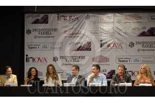 MÉXICO, D.F., 06JUNIO2014.- Los actores Mark Tacher, Cecilia Galeano, Lorena Herrera, Sherlyn y Sergio Goyri, presentaron la obra de teatro “El Salto del Tigre” , cuya temática girará en torno a la infidelidad. El director de la obra es Juan Carlos Ariza y la producción es de Producciones Varela. FOTO: MARÍA JOSÉ MARTÍNEZ /CUARTOSCURO.COM