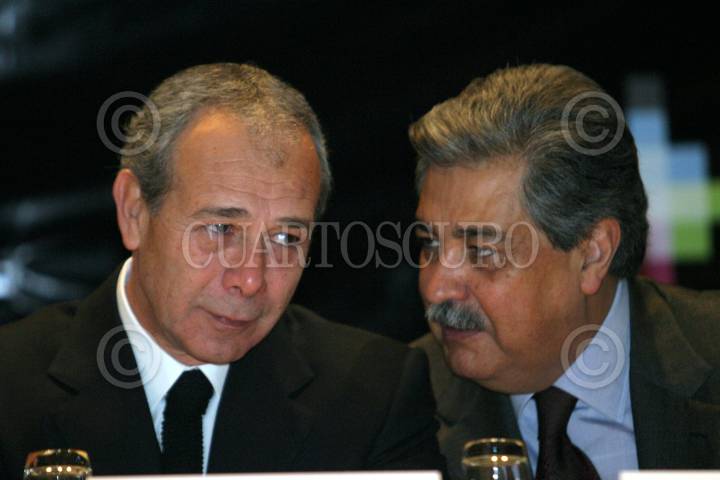 MEXICO, D.F. 12ENERO2006.- Marco Antonio Slim, Enrique Peña Nieto, gobernador del Estado de México, Pedro Aspe Armella, presidente del consejo de Administración de Volaris, Pedro Cerisola, secretario de Comunicaciones y Transportes y Rodolfo Elizondo, secretario de Turismo previo a la presentación de la nueva línea aerea Volaris. FOTO: Nelly Salas/CUARTOSCURO.COM
