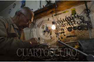 MÉXICO, D.F., 07JUNIO2014.- Miguel Arias es mecánico industrial, a sus 81 años lleva 70 años en el oficio. “Aprendí esto de los fierros desde los diez, fue la primera vez que me metí a un taller… soy un hombre de fierros”. Cuenta que siempre quiso ser mecánico de aviones pero que por circunstancias de la vida aprendió este oficio. “Antes el tiempo era diferente, la gente podía ser feliz; ahora faltan horas y sobre delincuencia”, expresó mientras iniciaba su jornada diaria. FOTO: MARÍA JOSÉ MARTÍNEZ /CUARTOSCURO.COM