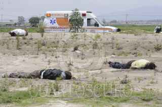 SANTA MARÍA TONATITLA, ESTADO DE MÉXICO, 08JUNIO2014.- Sobre el Libramiento a la Lumbrera 10 que corre paralelo al Circuito Exterior Mexiquense en Santa María Tonanitla fueron encontrados los cadáveres de 4 hombres. FOTO: LUIS CARBAYO /CUARTOSCURO.COM