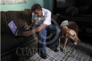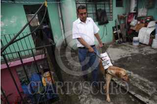 ORIZABA, VERACRUZ., 09JUNIO2014.- Iván y su perrita Daysi conviven en una humilde casa de la ciudad de Orizaba. Él es instructor, líder y motivador de un grupo de debiles visuales de la región. Ella es un perro guía adiestrado minuciosamente para acompañar a Iván durante todos sus traslados. Ambos personajes saltaron a la luz pública en un video donde se muestra a un elemento de seguridad de la clínica del IMSS No. 6 agrediendo a Iván Cortés Gómez por intentar entrar al edificio de salud con su lazarillo. En México la falta de cultura entre las autoridades y la sociedad ha provocado hechos de discriminación a las personas con capacidades diferentes. FOTO: FÉLIX MÁRQUEZ / CUARTOSCURO.COM