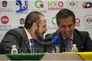 MÉXICO, D.F., 10JUNIO2014.- Othón Ortiz Valenzuela, director general de la Comisión Nacional del Deporte (Conade), Samantha Terán, campeona nacional de squash; Fernando Platas, director del Instituto Mexiquense del Deporte, y José María López, director del Abierto Mexicano de Raquetas, anunciaron la tercera emisión del campeonato, la cual se llevará a cabo del 16 al 21 de septiembre en Huixquilucan , Edomex. Paola Longoria, campeona mundial de raquetbol, confirmó su participación. FOTO: MARÍA JOSÉ MARTÍNEZ /CUARTOSCURO.COM