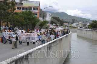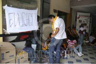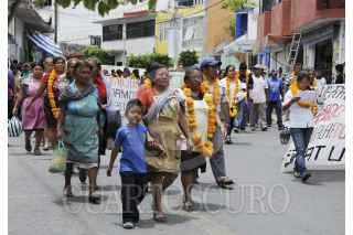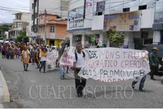 CHILPANCINGO, GUERRERO, 10JUNIO2014.-Maestros, estudiantes y padres de familia de la Universidad Autónoma Latinoamericana Caribeña de Ciencias y Artes (UALCA) reanudaron la huelga de hambre y marcharon de la Comisión Estatal de Derechos Humanos hacia el palacio de gobierno donde sostendría una reunión con el Secretario de Gobierno Jesús Martínez Garnelo. Austreberto Basilio Goytia y Luis Antonio Guadarrama quien dijo es el rector de la UALCA, dio a conocer que 39 personas estarán en la huelga de hambre encabezando 12 mujeres indígenas. FOTO: JOSÉ HERNÁNDEZ /CUARTOSCURO.COM