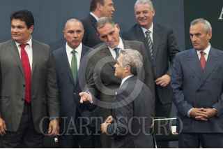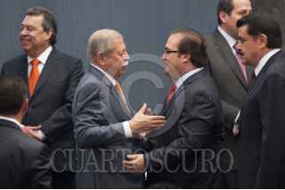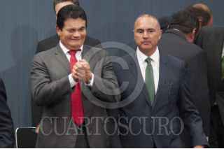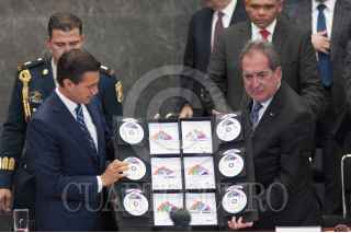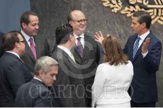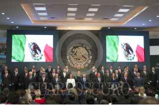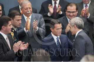 MÉXICO, D.F., 11JUNIO2014.- RJavier Duarte Ochoa, gobernador de Veracruz; Eruviel Ávila, gobernador del Estado de México; Miguel Alonso Reyes, gobernador de Zacatecas; Graco Ramírez, gobernador de Morelos; y Enrique Peña, presidente de México, durante la presentación de la campaña nacional de promoción turítica en la Residencia Oficial de Los Pinos. FOTO: IVÁN STEPHENS /CUARTOSCURO.COM