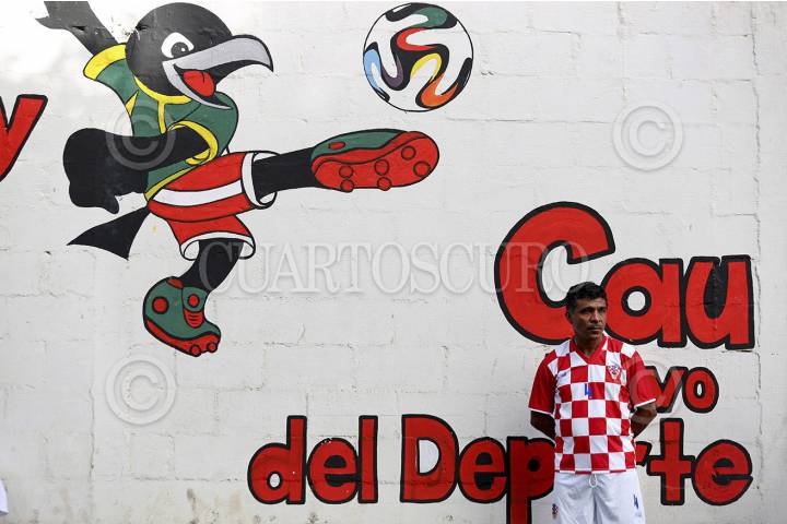 MÉXICO, D.F., 12JUNIO2014.- Con la fiebre del mundial, hoy se inauguró el "Mundialito 2014" en el cereso de Mérida en el cual participan 32 equipos integrados por los reos del penal; con la presentación de la mascota oficial "Cau-tivo" y una replica del Cristo del Corcovado de Brazil los 640 jugadores desfilaron con los uniformes representativos de cada país. FOTO: FRANCISCO BALDERAS /CUARTOSCURO.COM