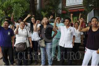 ACAPULCO, GUERRERO, 13JUNIO2014.- La instalaciones de la unidad académica de enfermería de la universidad autónoma de guerrero (UAG) continuaron tomadas por cuarto día consecutivo por aproximadamente 100 simpatizantes de la candidata ganadora de la elección para renovar la dirección del plantel, Martha Leticia Abarca Gutiérrez. La principal exigencia es que el rector de la UAG, Javier Saldaña Almazán, dé marcha atrás y retire las tres subdirecciones otorgadas a integrantes de la planilla perdedora, encabezada por Dora Leticia Bahena. FOTO: BERNANDINO HERNÁNDEZ /CUARTOSCURO.COM