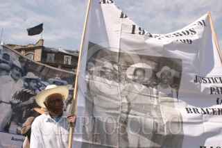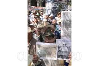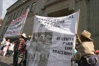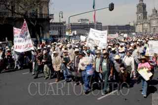 MEXICO, D.F., 17ENERO2006.- Ex-Braceros marcharon de la Ciuadadela a la Suprema Corte de la Justicia, para exigir se les devuelva su dinero que les fue retenido por el gobierno en la epoca que trabajaron en los Estados Unidos. FOTO: Moisés Pablo/CUARTOSCURO.COM
