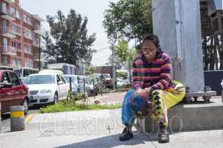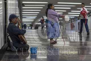 MEXICO,D.F., 14JUNIO2014.- Una pareja de invidentes interpreta canciones populares con una guitarra y una armónica a cambio de alguna moneda en la estación Candelaria del metro de la Ciudad de México. FOTO: DAVID POLO /CUARTOSCURO.COM