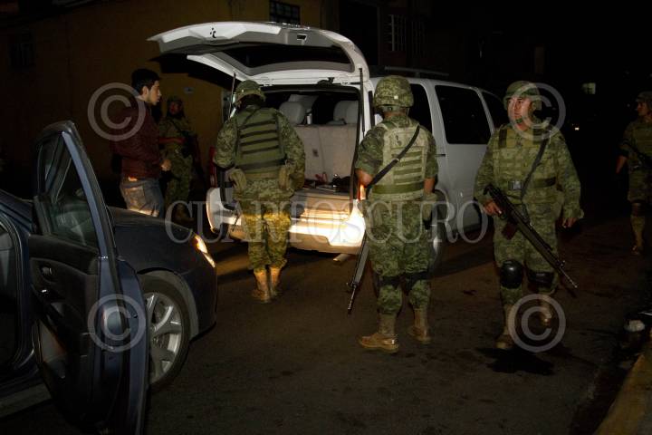 ECATEPEC, ESTADO DE MÉXICO, 14JUNIO2014.- Elementos del Ejercito Mexicano, Policía Federal y de la Secretaria de Seguridad Ciudadana del Estado de México (SSC) realizan operativo en las colonias de este municipio. Durante el operativo fue encontrado un auto tipo Spirit negro con reporte de robo. FOTO: GUILLERMO PEREA /CUARTIOSCURO.COM