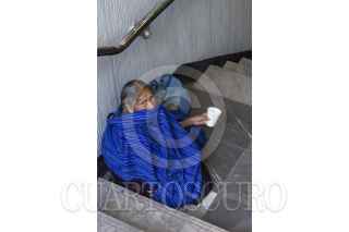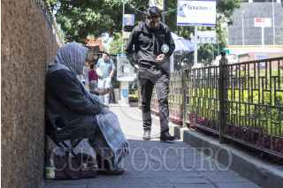 MEXICO, D.F., 15JUNIO2014.- Un hombre pide limosna a la entrada de una iglesia católica ubicada sobre la calle Madero, en el centro Histórico de la ciudad. En el suelo un hombre yace tendido en estado alcohólico. FOTO: DAVID POLO /CUARTOSCURO.COM