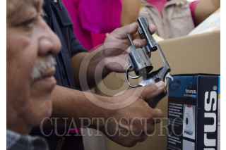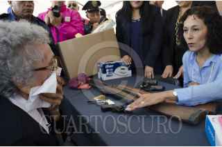 MÉXICO, D.F., 16JUNIO2014.- Un aproximado de 2 mil 300 armas , entre cortas, largas y granadas, han sido intercambiadas durante el programa “Por tu Familia, Desarme Voluntario”, el cual se realizará esta semana en la explanada de la Parroquia del Sagrado Corazón y San Felipe Neri en la delegación Venustiano Carranza. Hasta el momento se han invertido 8 millones de pesos en despensas, tabletas, electrodomésticos y dinero en efectivo que se ha intercambiado por las armas que los vecinos han entregado. FOTO: MARÍA JOSÉ MARTÍNEZ /CUARTOSCURO.COM