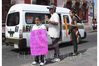 MORELlA, MICHOACÁN, 16JUNIO2014.- Familiares del niño Isaac Alberto Vázquez Morales, quien falleció hace algunos días en un balneario de Huandacareo, se manifestaron con pancartas frente a la escuela primaria Benito Juárez para demandar justicia, al considerar que fue un descuido por parte de autoridades educativas quienes no se responsabilizaron de su estancia en el campamento que se efectuaba en este lugar. La manifestación, encabezada por el abuelo del menor, José Refugio Morales no afecta la circulación sobre la calle Ortega y Montañez. Las consignas rechazan las acciones de la maestra Blanca Estela Villarreal y demandan la atención en el caso. FOTO: JUAN JOSÉ ESTRADA SERAFÍN /CUARTOSCURO.COM
