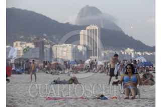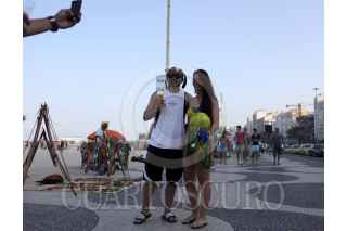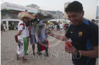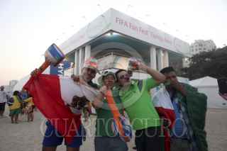 RÍO DE JANEIRO, BRASIL 16JUNIO2014.- Miles de aficionados de todo el mundo abarrotaron la playa de Copacabana para practicar fútbol y ver los partidos de fútbol proyectados en el FanFest de Río de Janeiro. FOTO: ALAN ORTEGA / CUARTOSCURO.COM