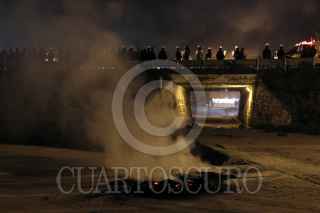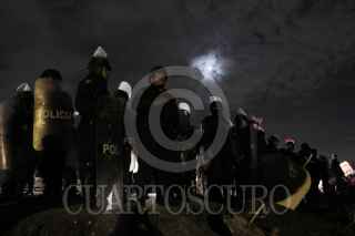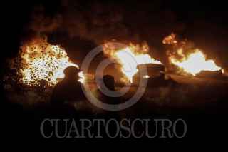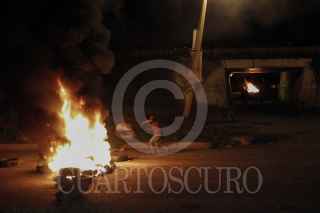 CUAUTLANCINGO, PUEBLA, 17JUNIO2014.- Ayer por la noche, un grupo de mototaxistas cerraron durante más de cinco horas la autopista Puebla- México y bloquearon con una fogata de llantas y madera, el acceso a los vehículos. Acudieron al lugar para expresar su inconformidad con respecto al operativo realizado el día anterior en los municipios de Coronango, Juan C. Bonilla y San Migue Xoxtla, en donde se aseguraron varias unidades mototaxis que circulaban de manea irregular. Los inconformes portaban palos y tubos para defenderse. Tras el retiro de los manifestantes policía federal y el cuerpo de bomberos realizaron labores de limpieza para reabrir el paso vehícular. FOTO: HILDA RÍOS /CUARTOSCURO.COM