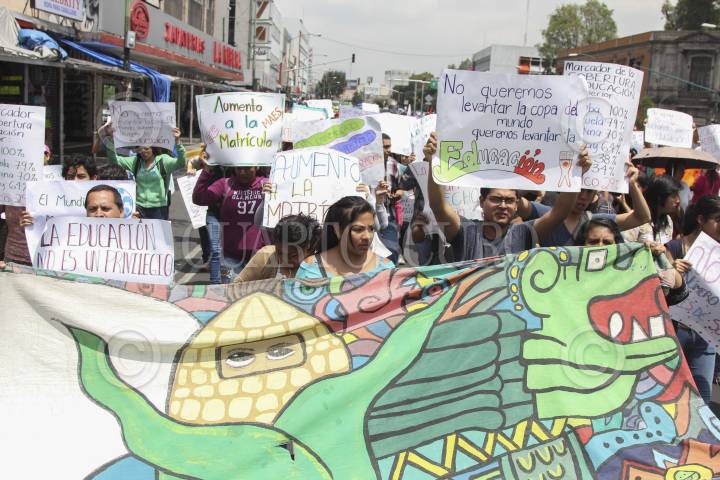 MÉXICO, D.F., 17JUNIO2014.- Alumnos rechazados de la educación media superior y superior e integrantes del MAES, realizaron una marcha en protesta para exigir el aumento a la matricula educativa en las preparatorias y universidades. Los inconformes marcharon de la normal de maestros hacia la sede de la Secretaria de Educación Pública. FOTO: SAÚL LÓPEZ /CUARTOSCURO.COM