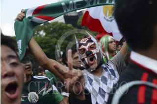 MÉXICO, D.F., 17JUNIO2014.- Seguidores de la Selección Mexicana de Fut bol se dieron cita en las inmediaciones del Ángel de Independencia para festejar el empate del equipo nacional contra la selección brasileña, en el marco de la Copa del Mundo Brasil 2014. FOTO: PEDRO ANZA /CUARTOSCURO.COM