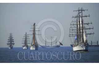 VERACRUZ, VERACRUZ, 18JUNIO2014.- La regata “Encuentro de grandes veleros Latinoamérica 2014” concluyó su viaje después de 134 días de alta mar donde los buques escuela de los países de Brasil, Colombia, Argentina, Chile, Venezuela y México compartieron la experiencias ultramarina. El buque escuela Cuauhtémoc logró reunir a los familiares y amigos del personal de marina que estuvieron navegado durante poco más de 4 meses. FOTO: MARÍA JOSÉ MARTÍNEZ HERRERA /CUARTOSCURO.COM