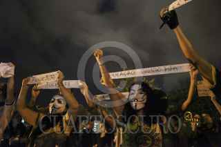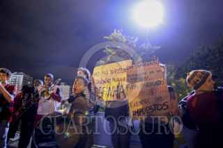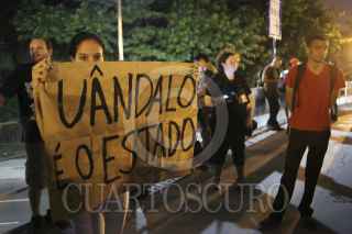 RÍO DE JANEIRO, BRASIL, 18JUNIO2014.- Diversas organizaciones de jóvenes como "#vem para rua" y anarquistas, se manifestaron en las afueras del estadio de Maracaná donde se realizó el partido entre Chile y España, portaban pancartas que rezaban “fuck fifa”, tocaron música durante la manifestación y se realizó pacíficamente. FOTO: ALAN ORTEGA /CUARTOSCURO.COM