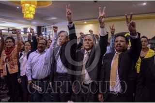 PUEBLA, PUEBLA, 19JUNIO2014.- Cuauhtémoc Cárdenas Solórzano y Jesús Zambrano Grijalva, presidente nacional del PRD, realizaron un acto de campaña de recolección de firma “Tú firma Vale" para aumentar el número de afiliados del partido. FOTO: PRD /CUARTOSCURO.COM