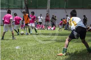 MEXICO, D.F., 21JUNIO2014.- Equipos de fútbol infantil de diferentes dependencias gubernamentales se enfrentaron el día de hoy en el club deportivo del STC Metro, en el torneo Mundialito: Por la democracia, con el que se busca promover valores cívicos a través del deporte. Los equipos provenían de la SEDESOL, IEDF, SSPDF y el sindicato del STC Metro. FOTO: DAVID POLO /CUARTOSCURO.COM