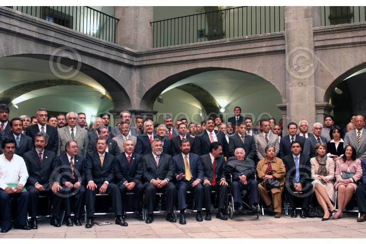 MEXICO, D.F., 18ENERO2006.- La foto del recuerdo de la Instalación del Consejo Consultivo de la Comisión Nacional del Bicentenario del Natalicio del Presidente Benito Juárez, en el Palacio de Minería. FOTO: Moisés Pablo/CUARTOSCURO.COM