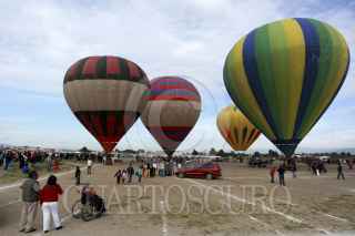 PEROTE, VERACRUZ., 22JUNIO2014.- La mañana de este domingo se inflaron globos aerostáticos en la explanada de la Fortaleza de San Carlos por el 489 aniversario de la fundación de Perote, sin embargo, los vuelos no pudieron realizarse por falta de un estudio de viento, que imposibilitó maniobrar los globos en las alturas. FOTO: FÉLIX MÁRQUEZ / CUARTOSCURO.COM