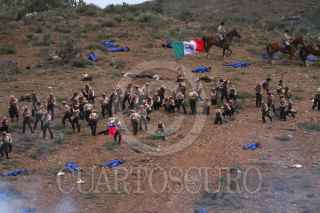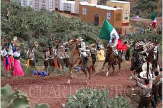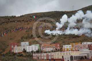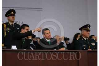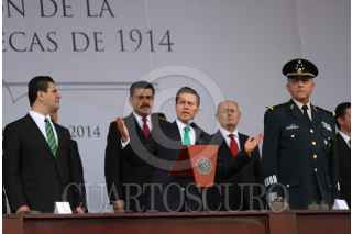 ZACATECAS, ZACATECAS, 23JUNIO2014.- Enrique Peña Nieto, presidente de México, Salvador Cienfuegos, Secretario de la Defensa y Miguel Alonso Reyes, gobernador del Estado, observan la representación por elementos del Ejército Mexicano de la Toma de Zacatecas, como parte de los festejos por el centenario en la cual la División del Norte al mando de Francisco Villa, Felipe Angeles y Pánfilo Natera, derrotó al ejército federal en la batalla que fue a la postre la derrota de Victoriano Huerta y el triunfo de la Revolución. FOTO: ADOLFO VLADIMIR /CUARTOSCURO.COM