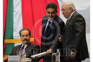 MÉXICO, D.F., 24JUNIO2014.- Los diputados Pedro Pablo Treviño, Marco Antonio Bernal Gutiérrez, Juan Bueno Torio, durante la reunión de Comisiones Unidas de Hacienda y Crédito Público y Presupuesto y Cuenta Pública Energía, en el palacio legislativo de San Lázaro. FOTO: ADOLFO VLADIMIR /CUARTOSCURO.COM