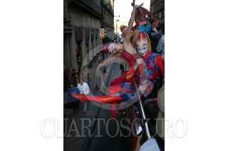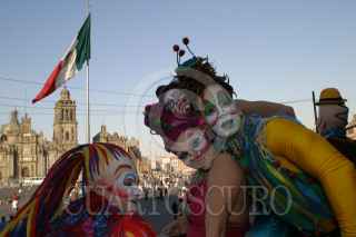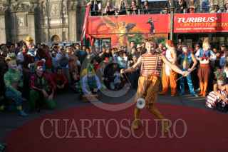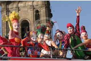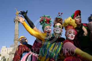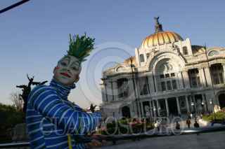 MEXICO, D.F. 18ENERO2006.- Integrantes del espectaculo circence canadiense Cirque du Sole, realizaron un recorrido por paseo de la Reforma en turibus hasta el Zócalo. FOTO: Nelly Salas/CUARTOSCURO.COM