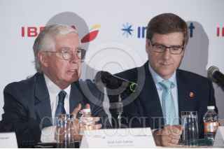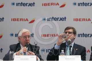 MÉXICO, D.F., 25JUNIO2014.- José Luis Garza, director general de Interjet, y Antonio Pimentel, director de Alianzas Iberia, durante la firma de colaboración entre estas dos aerolíneas que favorecerá la conectividad aérea entre el continente europeo y los principales destinos turísticos y de negocios del país. FOTO: DIEGO SIMÓN SÁNCHEZ /CUARTOSCURO.COM