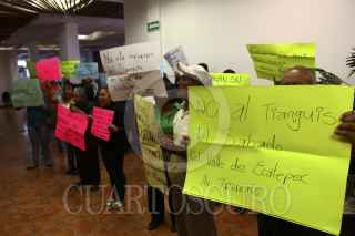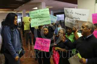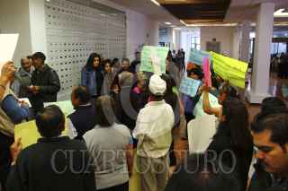 ECATEPEC, ESTADO DE MÉXICO, 25JUNIO2014.- A silbatazos y gritos en contra de funcionarios de las oficinas de comercio y tianguis, vecinos de la calle Trueno de la colonia Valle de Ecatepec, protestaron frente a la oficina del alcalde Pablo Bedolla López, para denunciar corruptelas por parte de los funcionarios. Los manifestantes burlaron la vigilancia del palacio municipal para llegar hasta la oficina del alcalde en la que se realizaba una reunión de cabildo. FOTO: CUARTOSCURO.COM