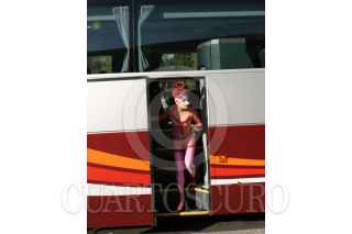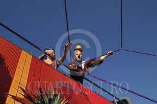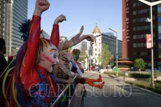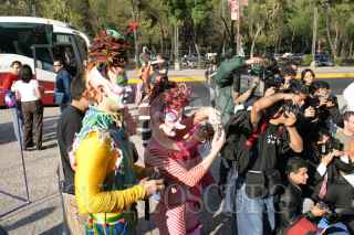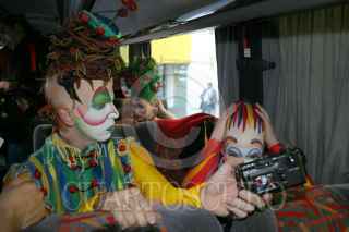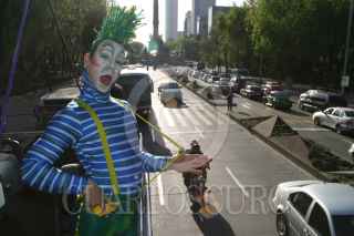 MEXICO, D.F. 18ENERO2006.- Integrantes del espectaculo circense canadiense Cirque du Sole, se preparan para un recorrido por paseo de la Reforma en turibus. FOTO: Nelly Salas/CUARTOSCURO.COM