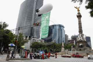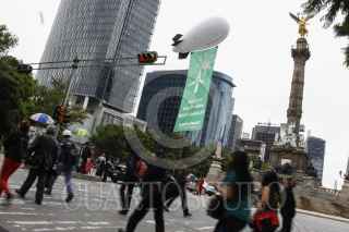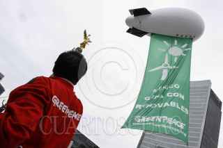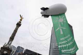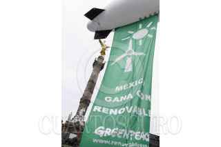 MÉXICO, D.F., 26JUNIO2014.- La organización ambientalista Greenpeace realizó una protesta en la glorieta del Ángel de la Independencia para recordar a los legisladores que se incluyan energías renovables como el sol, el aire y pequeñas hidroeléctricas en la legislación secundaria de la reformas energéticas que se está discutiendo en el Congreso. FOTO: RODOLFO ANGULO /CUARTOSCURO.COM