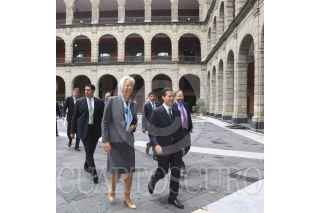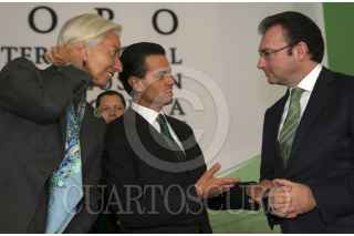 MÉXICO, D.F., 26JUNIO2014.- El Presidente Enrique Peña Nieto señaló, al inaugurar el Foro Internacional de Inclusión Financiera, celebrado en el Salón Tesorería de Palacio Nacional, que cuando México concluya el proceso de transformación en el que se encuentra, “un mayor número de mexicanos serán capaces de vivir sus propios sueños y de hacerlos realidad; de escribir historias exitosas a partir de la concreción y realización de sus sueños”. En la imagen el mandatario departe con Christine Lagarde, directora del Fondo Monetario Internacional y Luis Videgaray, secretario de Hacienda y Crédito Público. FOTO: PRESIDENCIA /CUARTOSCURO.COM