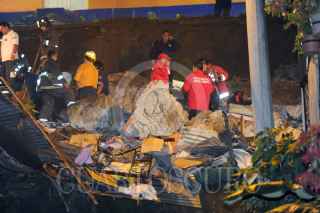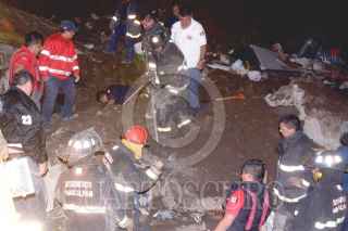 NAUCALPAN, ESTADO DE MÉXICO; 26JUNIO2014.- Bomberos, paramédicos y personal de Protección Civil de este municipio, realizan labores de rescate de las personas que quedaron sepultadas en el desgajamiento de tierra y derrumbe de una barda que se registro por la lluvia constante en la colonia Altamira. Al momento, han sido rescatados tres cuerpos y continúa la búsqueda de más personas en el lugar. FOTO: LUIS CARBAYO /CUARTOSCURO.COM