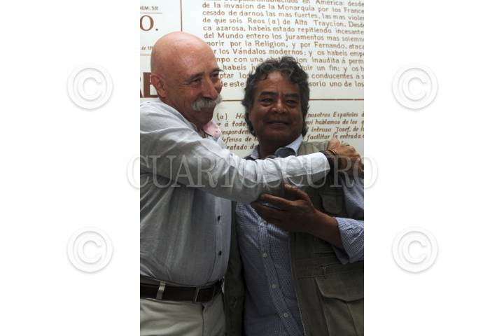 Premiacion De Aqui Soy-6.jpg GUADALAJARA, JALISCO, 27JUNIO2014.- Esta noche en el Museo del Periodismo y las Artes Gráficas (MUPAG) de esta ciudad se llevo acabo la entrega de Premios del concurso Nacional de Fotografía Cuartoscuro 2014, “De Aquí Soy”, dicho evento estuvo encabezado por el Director de la Agencia y Revista Cuartoscuro, Pedro Valtierra, el Director del Museo, Víctor Ortiz Partida y el Fotoperiodista, José Hernández Claire, quien fue reconocido con la estatuilla del Premio Cuartoscuro a la Trayectoria 2014, el ganador del primer lugar fue para Marcolino Hernández Charrez, segundo lugar para Emiliano Javier Thibaut Muchnik y el tercer lugar, Arturo Alejandro Albarrán Padilla, posteriormente se dio acceso a la exposición relacionada al concurso antes mencionado. FOTO: FERNANDO CARRANZA GARCIA /CUARTOSCURO.COM