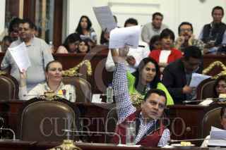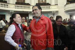 MÉXICO, D.F., 28JUNIO2014.- El pleno de la Asamblea Legislativa del DF aprobó las reformas a la Ley de Proceso Electoral del DF, la cual armoniza las causas de nulidad de elección con la legislación federal, con estos cambios se logra la paridad de genero en la candidaturas a un cargo público en los partidos. En la imagen los diputados Manuel Granados y Mauricio López, dirigente del PRIDF. FOTO: CUARTOSCURO.COM