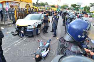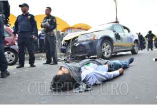 MÉXICO, D.F., 29JUNIO2014.- Una patrulla de Tránsito del Distrito Federal placas T11-16 chocó contra un automóvil particular donde resultaron lesionados 4 integrantes de una familia que iban al interior del vehículo. Además, atropelló a un ciclista que murió en el lugar. Los hechos ocurrieron en la avenida Fray Servando y Circunvalación a un costado del mercado de Sonora, en la delegación Venustiano Carranza. FOTO: LUIS CARBAYO /CUARTOSCUTO.COM