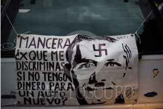 MÉXICO, D.F., 29JUNIO2014.- Cientos de inconformes con la iniciativa de ley "No circula" se manifestaron a las afueras de las instalaciones del GDF lanzando consignas en contra del Jefe de Gobierno, Miguel Ángel Mancera. FOTO: PEDRO ANZA /CUARTOSCURO.COM