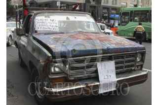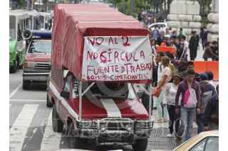 MÉXICO, D.F., 30JUNIO2014.- Integrantes de organizaciones sociales, marcharon del Ángel de la Independencia al zócalo capitalino donde exigieron que el gobierno del Distrito Federal revoque el doble no circula para vehículos que cuenten con más de 15 años de antigüedad. FOTO: SAÚL LÓPEZ /CUARTOSCURO.COM