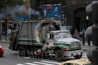 MÉXICO D.F., 30JUNIO2014.- Un camión recolector de basura perteneciente al servicio relimpia, circula en eje central emitiendo humo de su escape. FOTO: GUILLERMO PEREA /CUARTOSCURO.COM