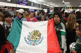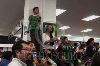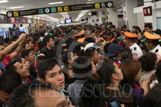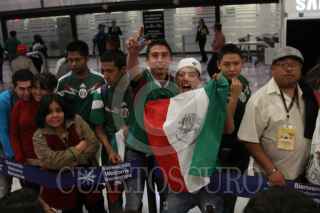 MÉXICO, 30JUNIO2014.- Al rededor de mil seguidores de la selección mexicana de fútbol abarrotaron los pasillos del área de llegadas de la terminal numero uno del AICM para recibir a los seleccionados tras su participación en el mundial de Brasil 2014. Durante algunos minutos se presentaron conatos de bronca debido a al tumulto de personas. FOTO: SAÚL LÓPEZ /CUARTOSCURO.COM